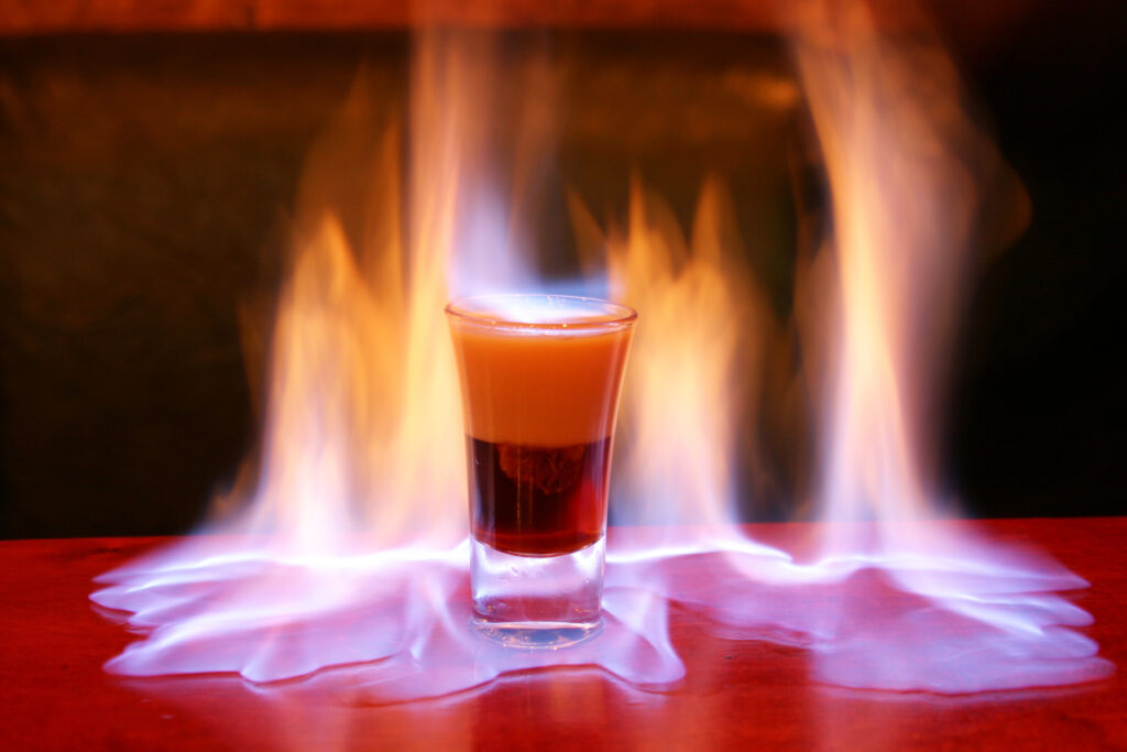 Zum feurigen Einstieg servieren wir Ihnen einen B-52* als Feuerstraße: Diese leckeren dreischichtigen Likör-Shots, bestehend aus Kaffeelikör, Irish Cream und Old Pascas 73, werden flambiert.